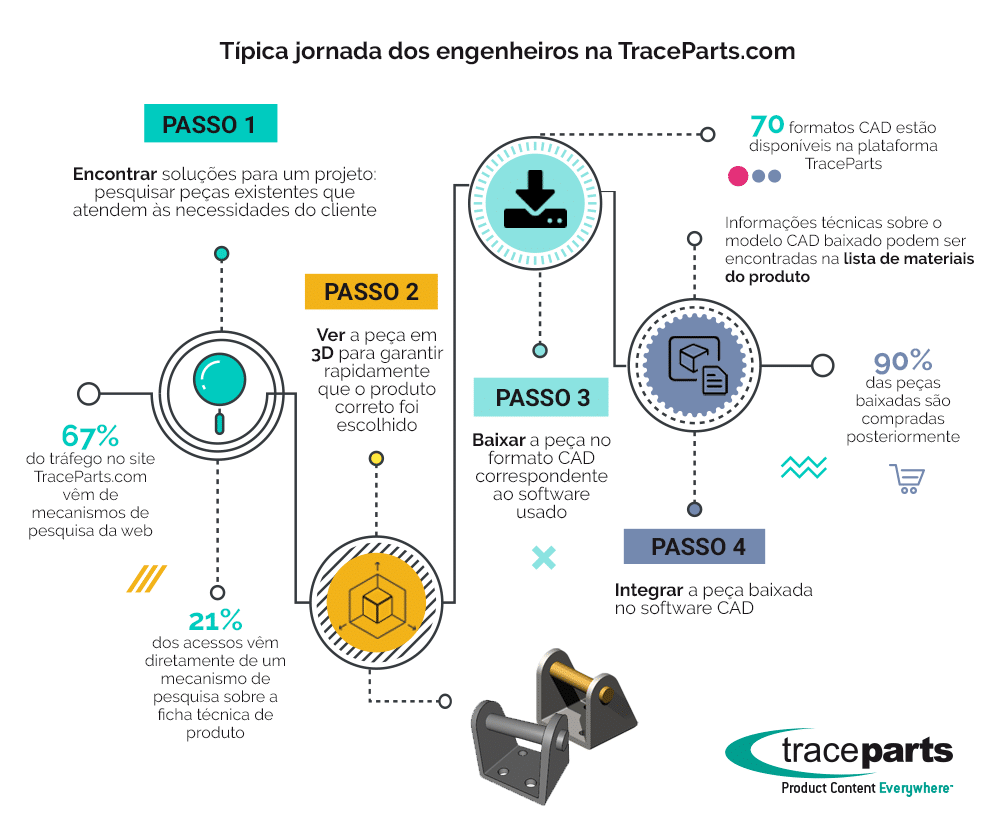 Para descobrir por que os projetistas profissionais estão usando a plataforma TraceParts, é preciso entender exatamente que tipo de jornada eles seguem ao usar a plataforma.