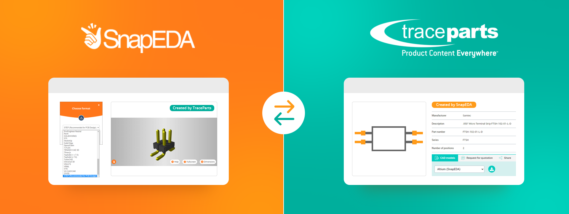 Parceria entre TraceParts e SnapEDA para oferecer experiência de usuário unificada para obter gratuitamente diagramas PCB, símbolos esquemáticos e modelos MCAD 3D