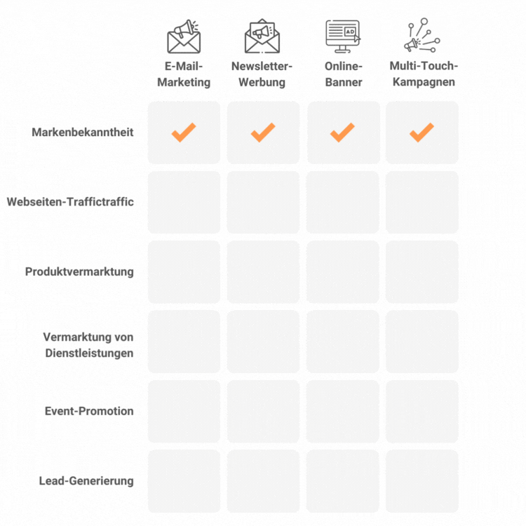 - Multi-Touch-Kampagnen über mehrere Kanäle: Mit der kombinierten Performance der Online-Marketing-Lösungen von TraceParts können Sie Ihre Zielgruppe auf verschiedenen Kanälen gleichzeitig erreichen. Maximieren Sie Ihre Reichweite durch zielgruppenorientierte Werbebotschaften z.B. mittels E-Mail-Kampagnen kombiniert mit Online-Bannern. So sorgen Sie dafür, dass Ihre Marke in jeder Phase der Customer-Journey über mehrere Kanäle hinweg sichtbar wird.
