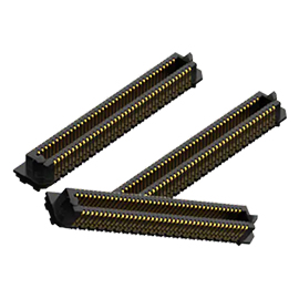 Mit einer Stapelhöhe von 5 mm, einer Breite von 5 mm und einem Raster von 0,635 mm. Diese Mikroverbindungen haben eine hohe Dichte mit bis zu 240 Ein-/Ausgängen (I/Os). Das vierreihige Design ermöglicht 10 bis 60 Positionen pro Reihe.