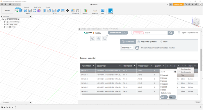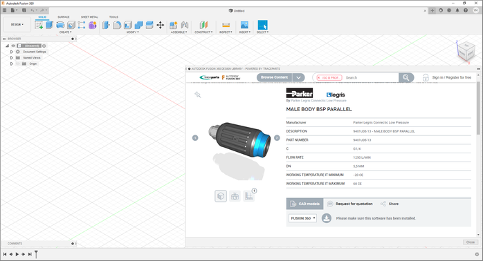 How to find and insert TraceParts 3D models in Fusion 360