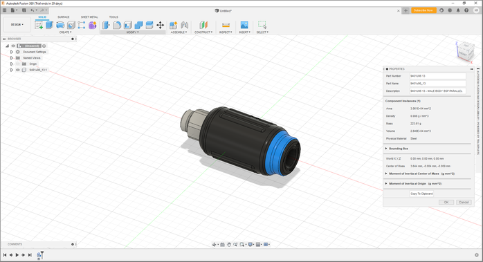 6. The selected component will be directly inserted in Fusion 360.
