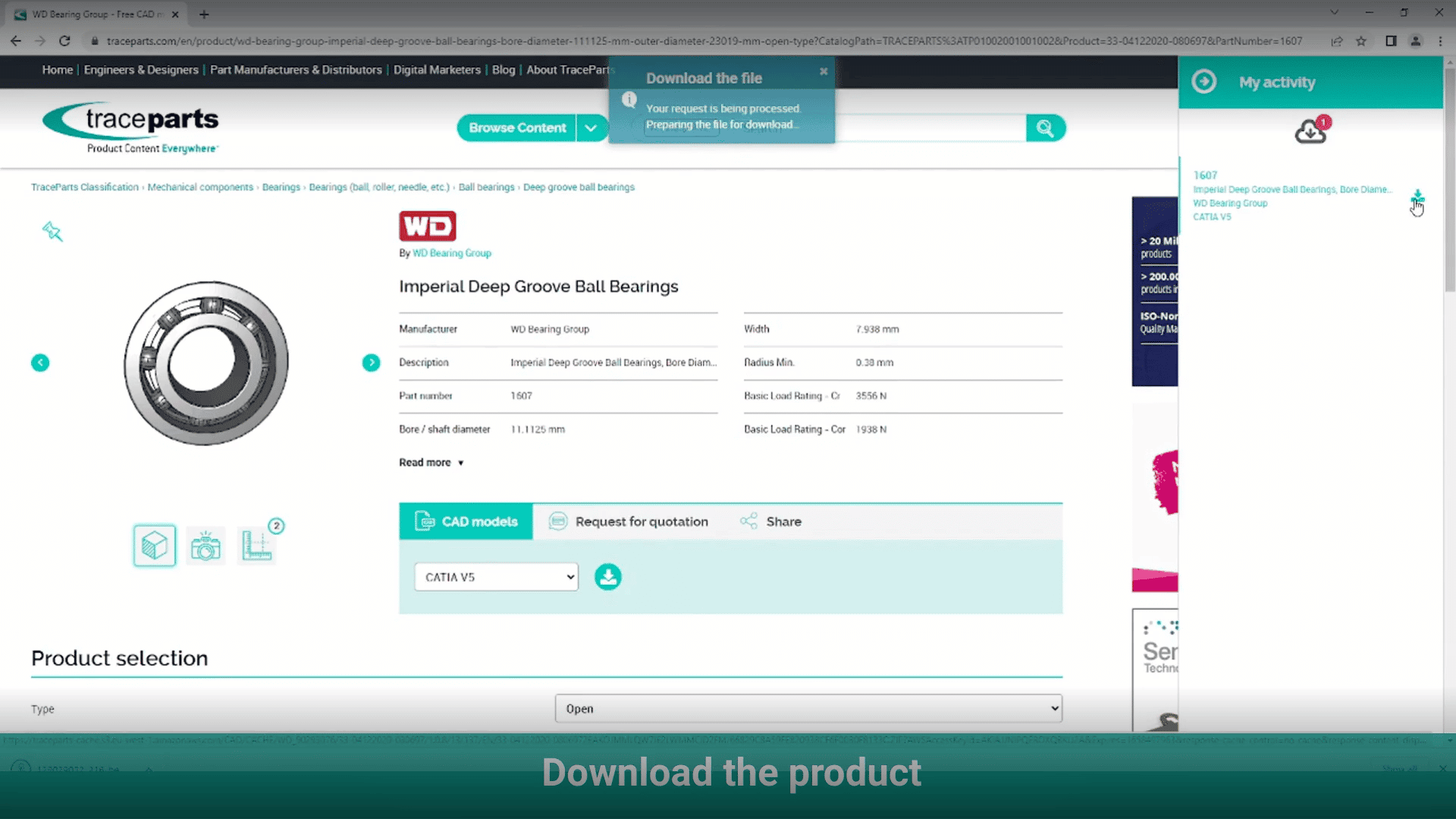 Discover how to download a CAD component from the TraceParts CAD library and insert it into CATIA V5 in the following video: