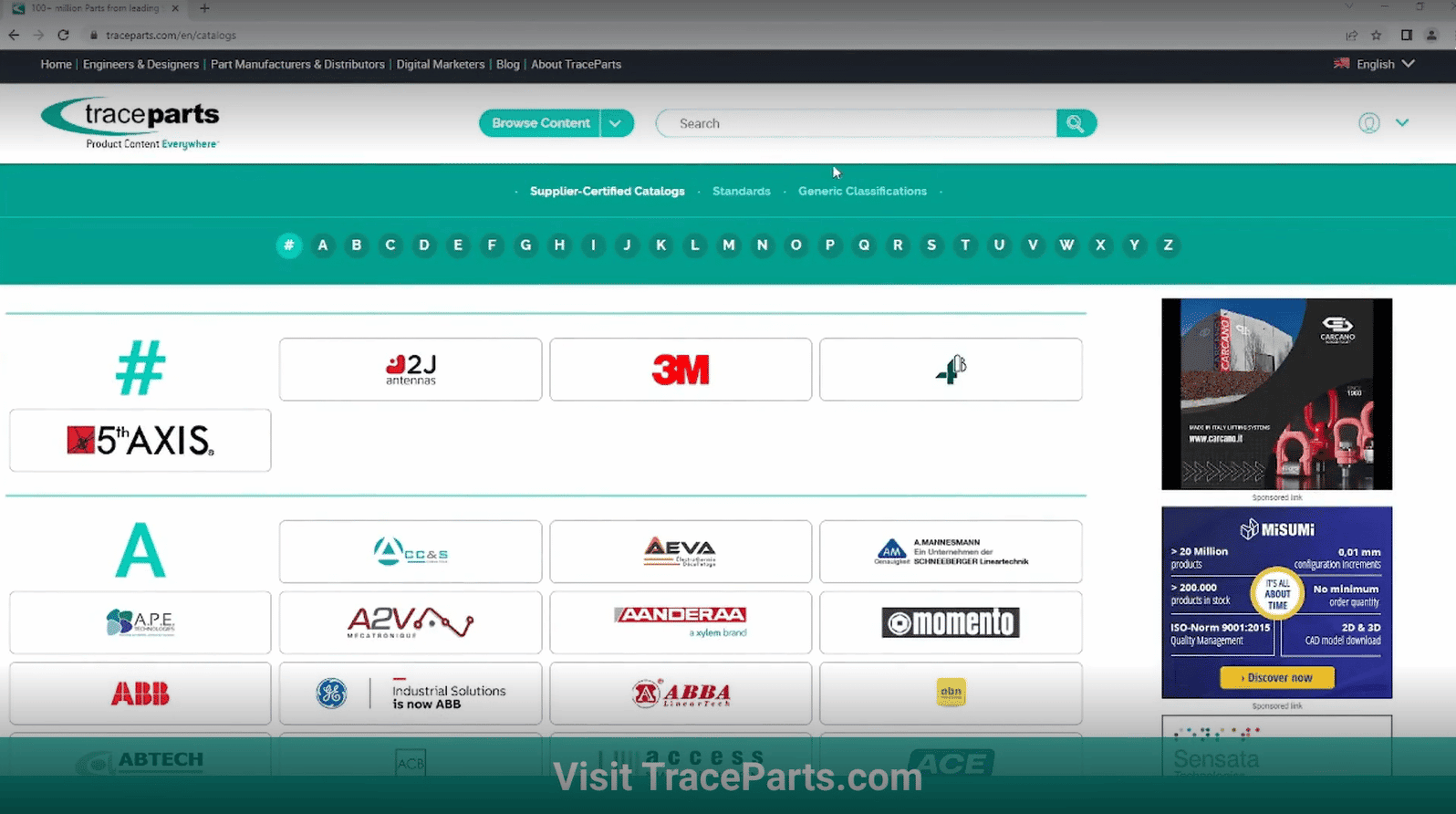 1- Go to TraceParts.com, search and find a part by the specific reference or catalogue name