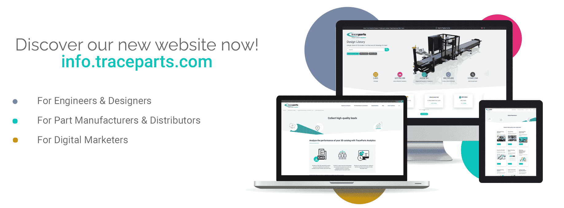 Saint-Romain, Francia – 26 de abril de 2022 – TraceParts, uno de los principales proveedores mundiales de contenido digital 3D para la ingeniería y el diseño, acaba de lanzar una nueva versión de su sitio web corporativo (staging-info.traceparts.com), ofreciendo así a los proveedores de componentes, los editores de software de diseño, los fabricantes de material informático y los profesionales de la impresión 3D y el prototipado rápido una ergonomía más intuitiva, un diseño más moderno y una funcionalidad enriquecida.