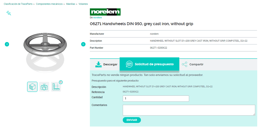 La función Solicitar presupuesto ha tenido mucho éxito entre los diseñadores e ingenieros, ya que pueden saber el precio desde que encuentran el modelo CAD de la pieza que desean integrar en un proyecto de diseño.