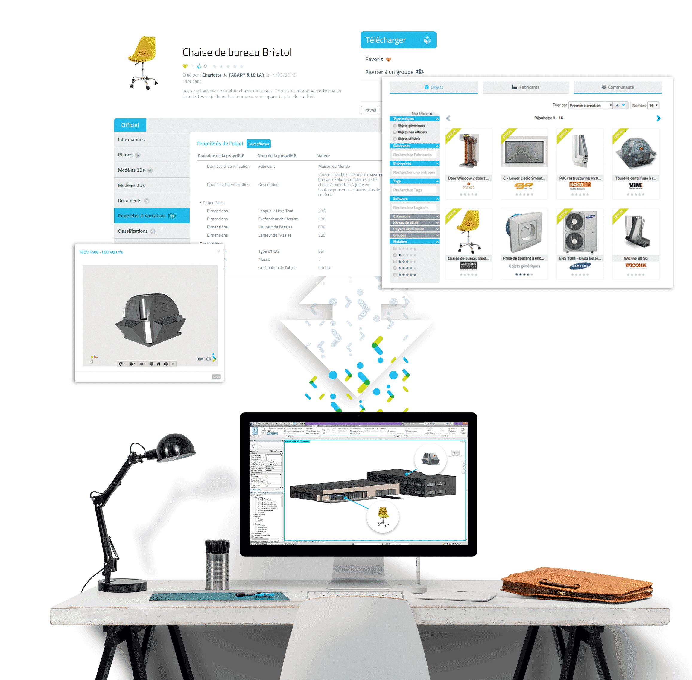 En devenant utilisateur de la plateforme BIM&CO, vous avez la possibilité de télécharger, créer, publier, mettre à jour, partager ou encore collaborer sur vos objets et propriétés BIM directement depuis le Cloud ou d’utiliser des objets existants pour votre maquette numérique au sein d’espaces publics ou privés.