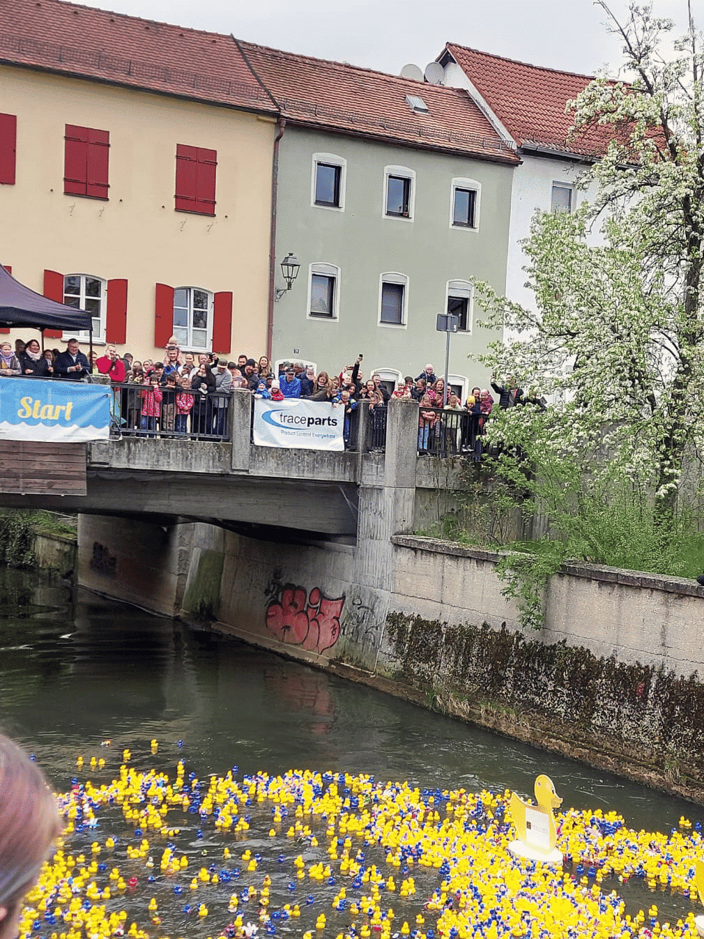 Une fois par an, Amberg accueille un événement caritatif d’un genre particulier : la traditionnelle course de canards organisée par le club Round Table 69 Amberg. Après une pause de deux ans liée au coronavirus, 5 000 canards ont pu enfin être mis à l’eau le 24 avril dernier pour participer à la course. TraceParts est l’un des principaux sponsors de cet événement dont la popularité s’étend bien au-delà des frontières d’Amberg.