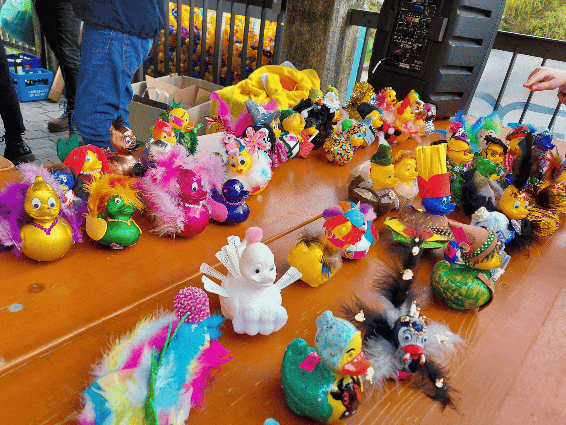 À 15 h 30, l’heure de la course a sonné. Un peu plus de 5 000 animaux en plastique se sont élancés du pont Fronfestgasse en direction de la porte Stadtbrille à la sous-préfecture d’Amberg. Au bout de 25 minutes haletantes, un canard s’est finalement détaché après avoir longtemps dérivé sur la Vils en compagnie d’autres compères, sous le regard attentif des nombreux spectateurs. Le canard gagnant a permis à son propriétaire d’assister à un concert exclusif autour d’un feu de camp donné par le groupe Inchoate, qui a également accompagné l’événement sur place jusque tard dans la soirée.