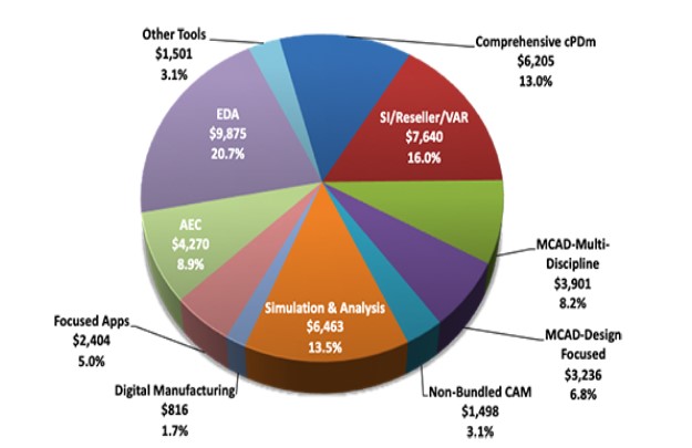 Répartition du marché du PLM par types d’application. Doc : CIMdata