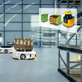 Pour les plates-formes mobiles à navigation libre, Pilz propose aux fabricants une solution de sécurité complète selon l’ISO 3691-4 – pour l’efficacité du flux de marchandises dans la production et la logistique. Elle est constituée du micro-automate configurable de sécurité PNOZmulti 2 avec des fonctionnalités pour la surveillance de la synchronisation et la commande du scrutateur laser de sécurité PSENscan.