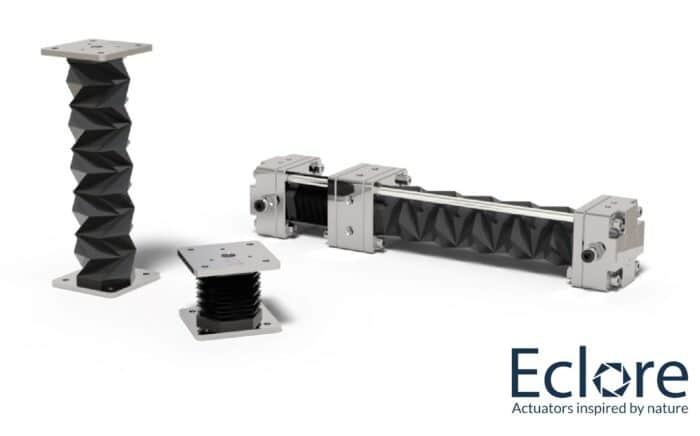 Le soufflet en élastomère plié de façon astucieuse se déploie à la façon d’un origami sur une grande longueur. Doc : Eclore Actuators
