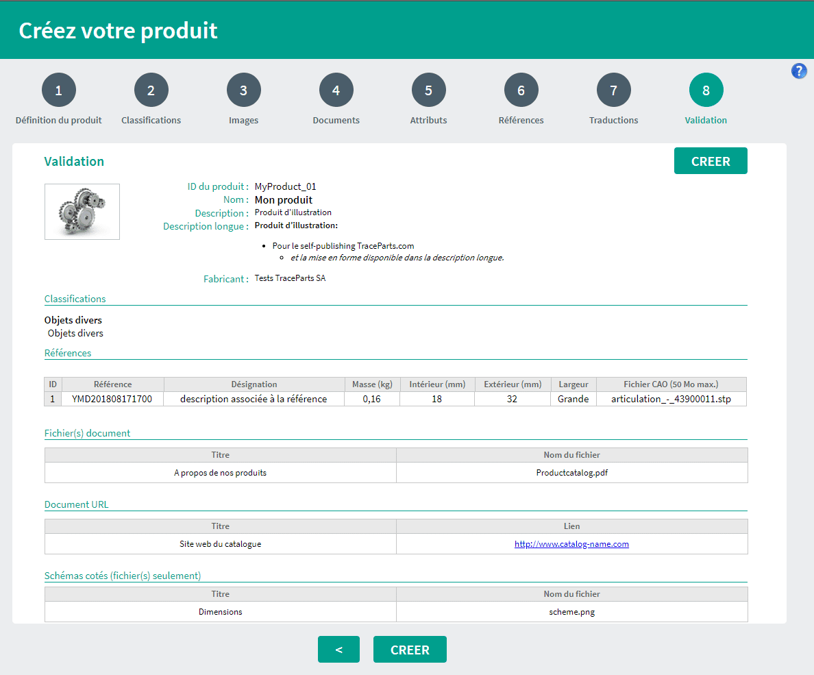 Cette étape vous permet de visualiser les informations relatives à votre produit avant la création de celui-ci.