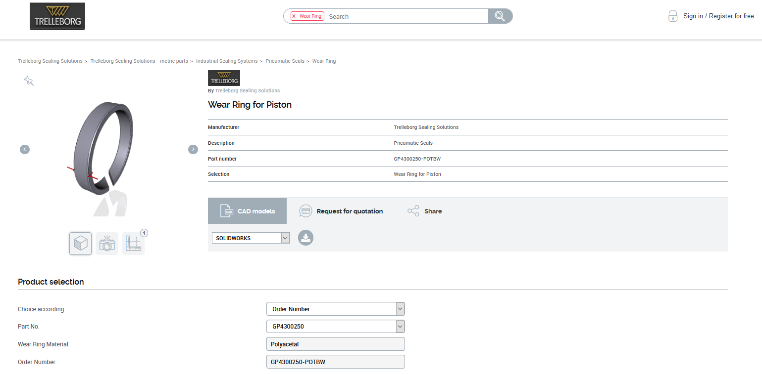 D’un point de vue technique, le site réside sur les serveurs TraceParts. Mais comme les données de CAO sont intégrées en toute transparence au site de Trelleborg Sealing Solutions, les utilisateurs n’ont pas l’impression d’avoir quitté le site de notre client.