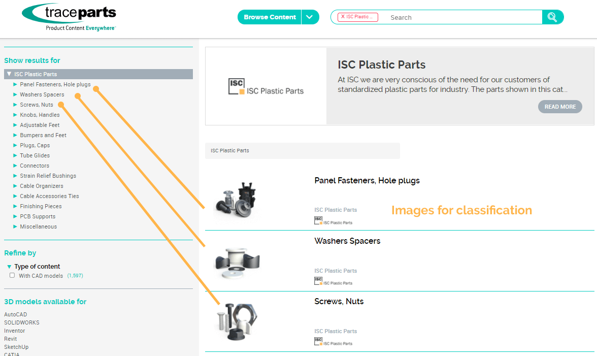 TraceParts deve conoscere la categoria di classificazione in cui ogni prodotto deve essere elencato.