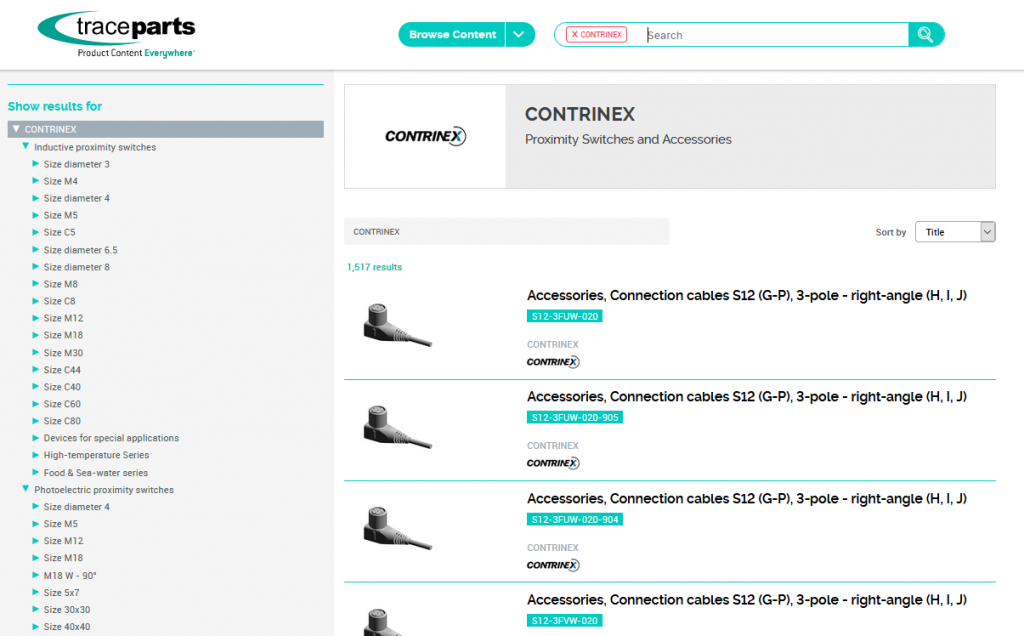 Contrinex has an excellent solution for the seamless integration of the systems, with the result that users are not aware that they are leaving the Contrinex web site, despite the fact that TraceParts is generating the product models in the background.