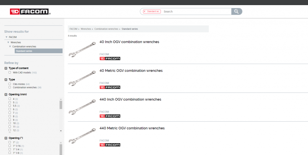 Facom’s catalog contains several thousand items. The first library offered on the www.traceparts.com website includes a selection of the most frequently needed items: wrenches, ratchets, sockets, torque wrenches and screwdrivers. New products and ranges will steadily be added to the catalog; soon we will add pliers and specific tools for the aeronautic sector.