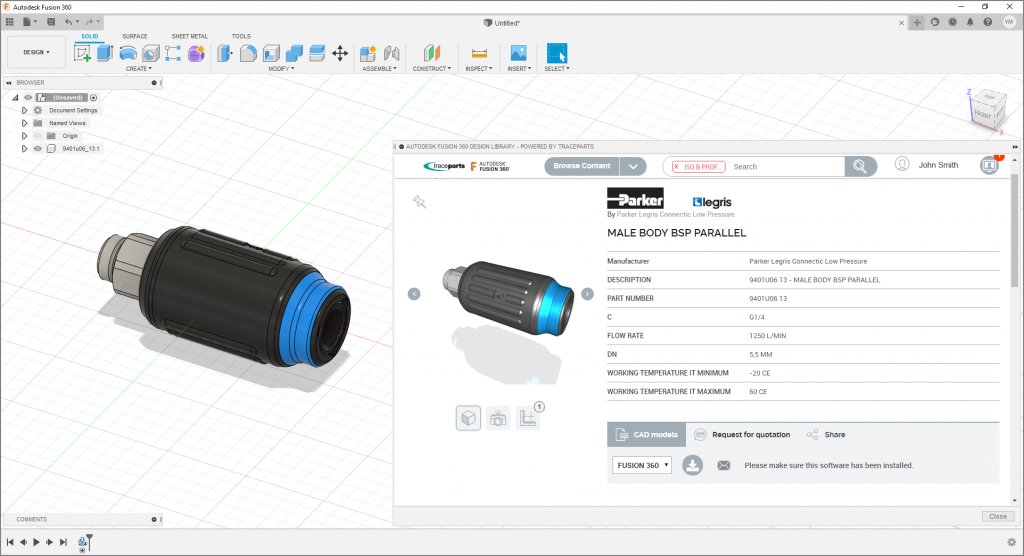 Saint Romain, France – April 6, 2021 – TraceParts, one of the world’s leading providers of 3D digital content for engineering, announces the immediate availability of its 3D CAD library seamlessly integrated within Autodesk Fusion 360, the Integrated CAD, CAM, CAE, and PCB software.