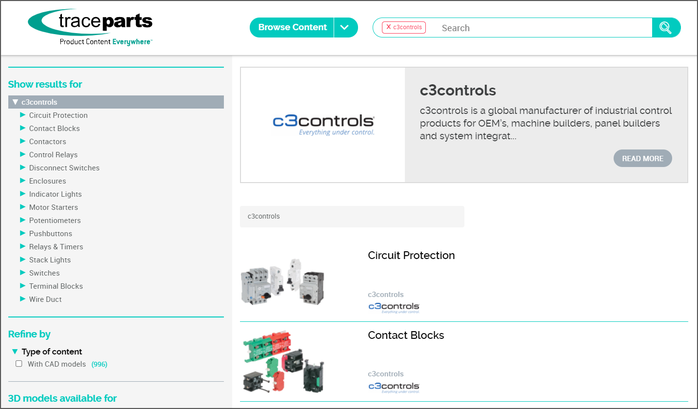 c3controls is pleased to introduce our industrial control products to the TraceParts platform. We believe this is a great opportunity because it will help us reach a wider audience while also adding a valuable service to our existing customers.