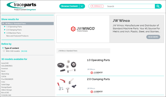 We are delighted that JW Winco has chosen TraceParts as its valued product data partner. The JW Winco product catalog, now available at TraceParts.com, will allow designers and engineers to easily find the products they need, download the model in the required format, and incorporate it directly into their design.