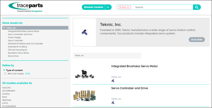 By partnering with TraceParts to publish the Teknic 3D content catalog, we will be able to increase our brand awareness, and our customers can now save time by inserting our product data as native 3D models directly into their designs.