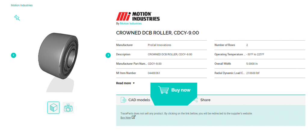 For each parts catalog published on www.traceparts.com and equipped with this feature, the “Buy now” button can be seen by all engineers and designers visiting the product datasheets.
