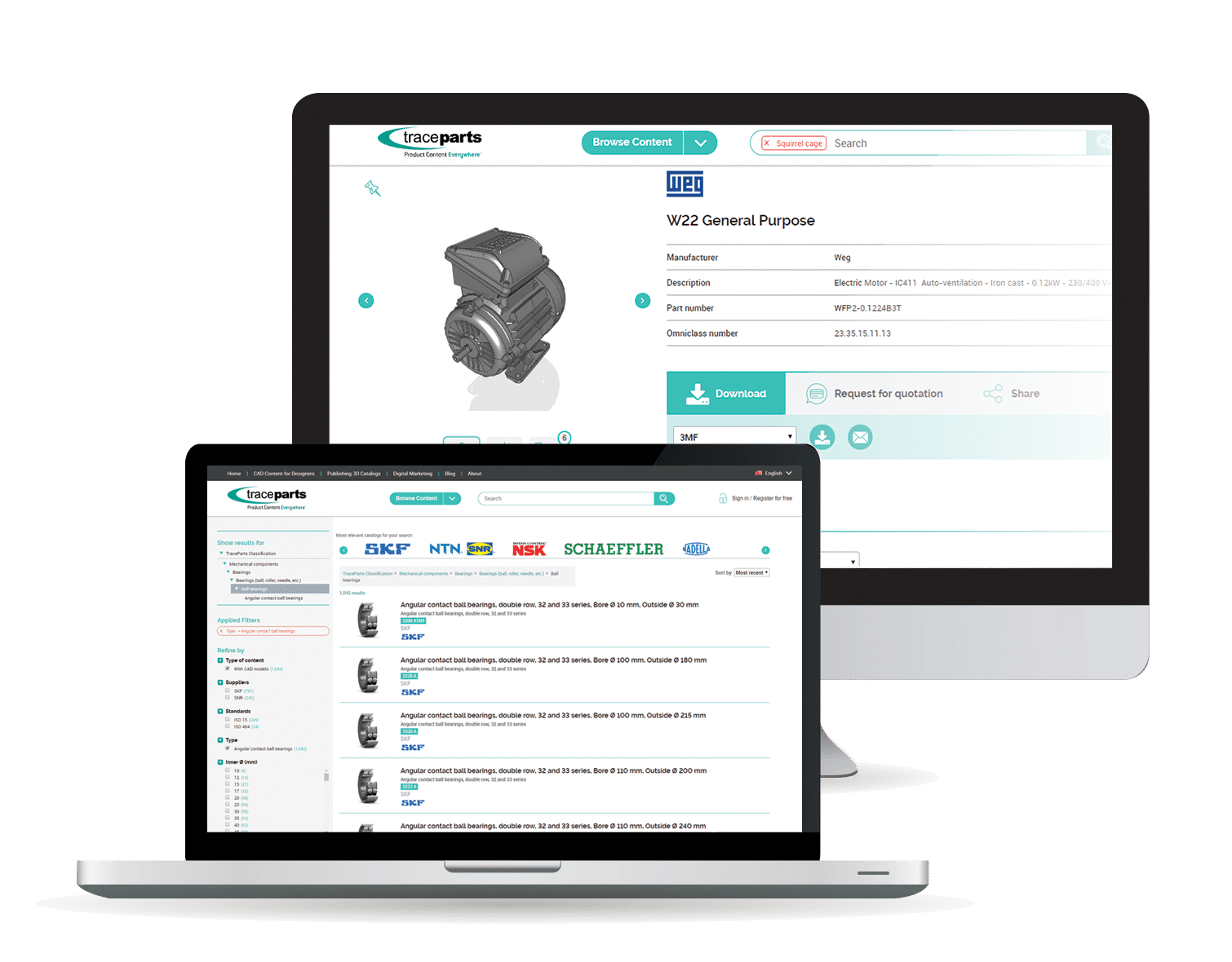 Engineers and Designers use TraceParts 24/7 to download for free hundreds of millions of components to include and specify them directly into their design projects. When a product is downloaded, part vendors receive detailed information about who has made this download, fueling their sales teams and their CRM with highly qualified sales-ready leads.