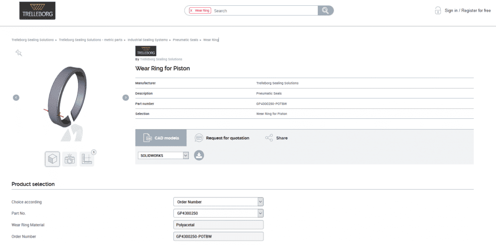 «Секрет успеха TraceParts в том, что этот тип электронного каталога продуктов — это, по сути, решение, адаптированное к любым требованиям, основанное на индивидуальном корпоративном дизайне компании», — объясняет Кристиан Баумгертнер, управляющий директор TraceParts. «С технической точки зрения сайт работает на серверах TraceParts. Но поскольку данные САПР были полностью интегрированы в корпоративный дизайн сайта Trelleborg Sealing Solutions, у пользователей создается впечатление, что они не покинули веб-сайт наших клиентов».
