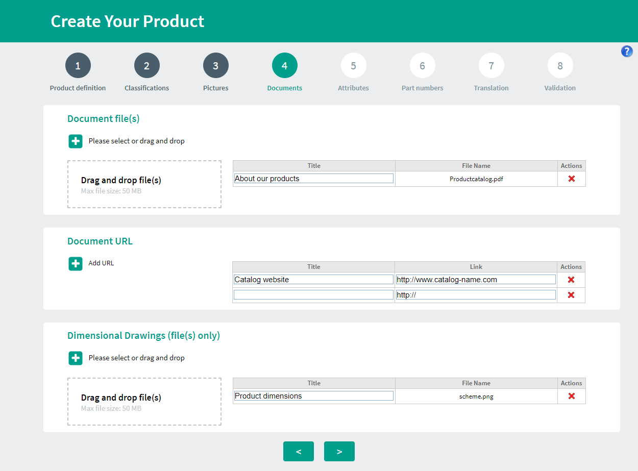 - You can choose to host one or more documents on the TraceParts Self-Publishing platform or to associate one or more URL links with your product. You can associate all sorts of documents with your product: assembly instructions, videos, certificates of conformity, and so on.