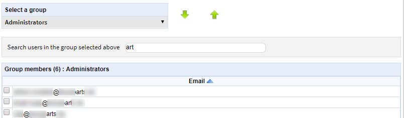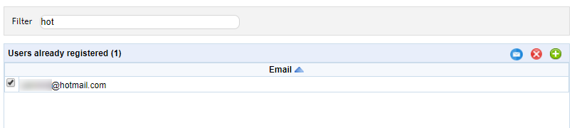 - The content of the list is automatically filtered as soon as you start typing a criterion. Note: the search will return users whose emails contain the search criteria.