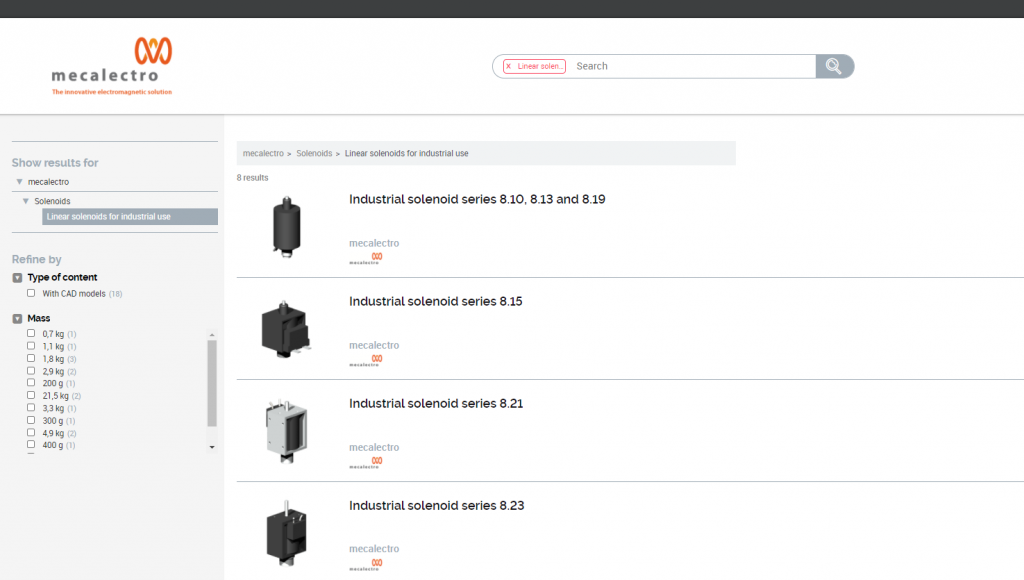 The demos carried out by TraceParts at Mecalectro persuaded the company to take the plunge. It decided to target this action at the core products in its standard range (linear solenoids, shotbolts and holders).