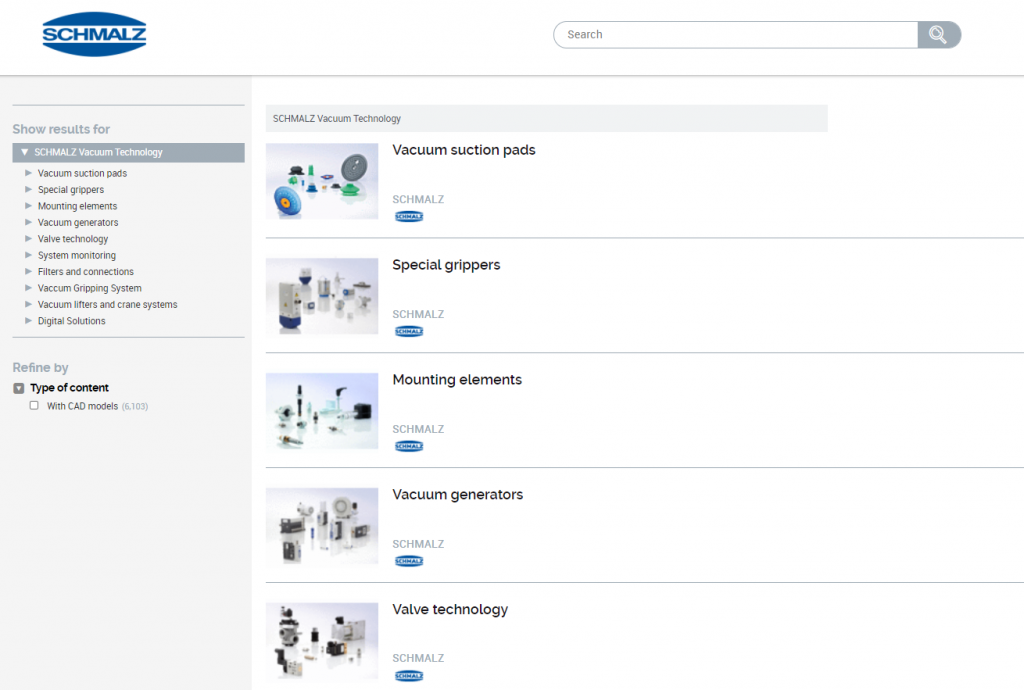 With the support of TraceParts, Schmalz can now supply its customers with all the key data at a glance online: product photos, prices, availability and above all, design data.