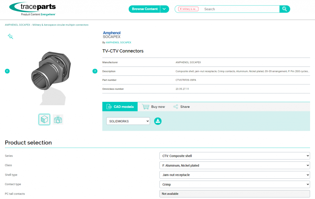 Amphenol Socapex 旗舰产品的 CAD 模型可从公司官网和 TraceParts.com 平台上获取。
